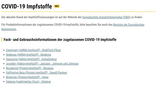 07.02.2022:Die Nebenwirkung Transverse Myelitis (TM) wird neu aufgenommen, siehe Fachinformation 4.4. Neurologische Ereignisse und 4.8 Häufigkeit „nicht bekannt“.