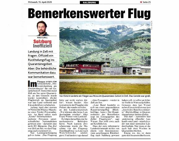Die Kronen-Zeitung berichtete in ihrer Ausgabe vom 15. April 2020 in dem nachfolgend dargestellten