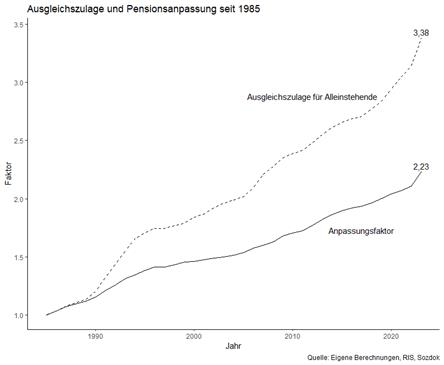 Die Anpassung der Richtsätze liegt seit Jahrzehnten über den Pensionsanpassungen. Nachfolgende Grafik verdeutlicht das: