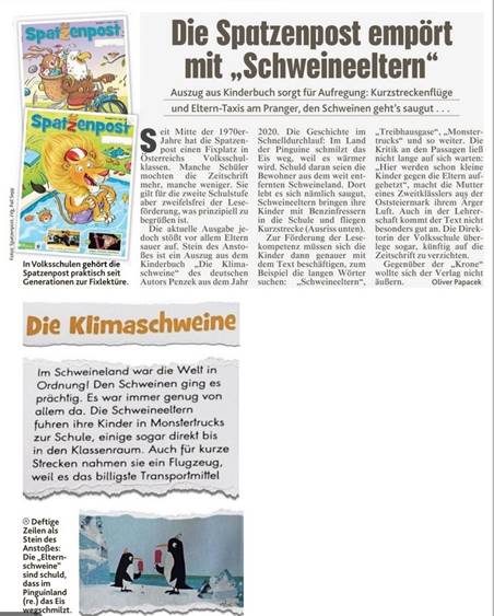 Schon im Volksschulalter werden hier Kinder indoktriniert mit einem unverschämten Gossenjargon, wie man ihn auf einem Parteitag der Grünen erwarten kann, nicht aber an einer österreichischen Schule zur Verteilung kommenden Zeitschrift.