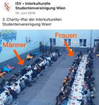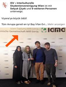 Die Interkulturelle Studentenvereinigung (ISV) wird auf der Homepage der „Islamischen Föderation Wien“, der als österreichischer Ableger der Milli-Görus-Bewegung gilt1, als deren studentische Gruppierung geführt und ist an derselben Adresse ansässig2,3. Aber auch der eigene Social-Media-Auftritt offenbart klar die Zugehörigkeit zur radikal-islamistischen Bewegung: Auf der Facebook-Seite der ISV ist das Logo des deutschen Ablegers der Milli Görus praktisch omnipräsent.