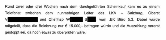Darüber hinaus stellt sich die Frage, warum der Informant S. K. tatsächlich nicht die vereinbarte Prämie in der Höhe von 15.0000 Euro vom Bundeskriminalamt erhalten hat.