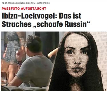 Bereits am Sonntag, den 24. Mai 2020, veröffentliche die Onlineausgabe der Kronenzeitung in einem Artikel unter dem Titel „Ibiza-Lockvogel: Das ist Straches ,schoafe Russin´“[1] ein Foto der Video-Protagonistin: