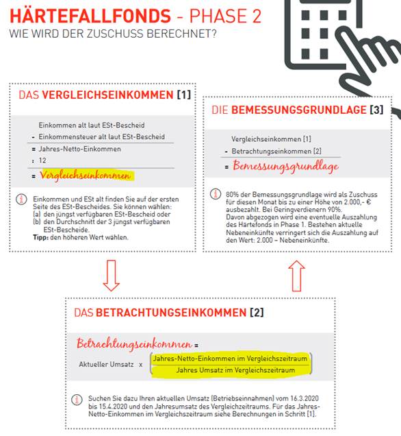 Der Härtefallfonds soll Unternehmerinnen und Unternehmern den durch die Corona-Maßnahmen bedingten Einkommensverlust ersetzen. Um diesen Einkommensverlust zu berechnen, wurde ein Berechnungssystem entwickelt. Dieses wird auf der Website der Wirtschaftskammer folgendermaßen erklärt: