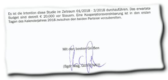 Herrn Mag. Gustav Gustenau, unterzeichnet.