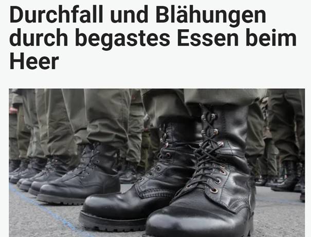 Wie in den diversen Medien mehrfach berichtet, sollen unzählige Soldatinnen und Soldaten durch beim Bundesheer serviertes Fertigessen, das mit Stickstoff begast wurde, Durchfall und Blähungen erlitten haben.
