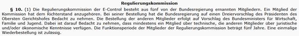 Bezüglich der Bestellung der Organe sieht das E-Control-Gesetz folgende Regelungen vor: