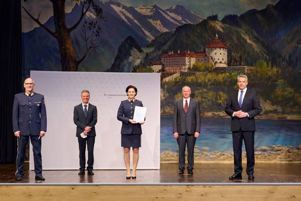 Astrid Mair wurde am ersten April 2021 zur neuen Bezirkspolizeikommandantin von Kufstein bestellt – das erste Mal in Tirol, dass eine solche Funktion von einer Frau übernommen wird. "Es freut mich ganz besonders, dass mit Oberstleutnant Astrid Mair die erste Frau in Tirol an der Spitze eines Bezirkspolizeikommandos steht. Ich wünsche ihr in dieser verantwortungsvollen Führungsfunktion alles Gute und viel Erfolg", beglückwünschte Nehammer die leitende Polizeibeamtin. Der Minister übereichte ihr am Montag, den 12. April 2021, gemeinsam mit Landespolizeidirektor Edelbert Kohler das Bestellungsdekret. Ebenso anwesend bei diesem Festakt waren der Bezirkshauptmann Christoph Platzgummer sowie der Kufsteiner Bürgermeister Martin Krumschnabel.