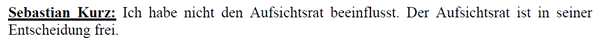 - Bei seiner Befragung im Untersuchungsausschuss im Juni 2020 stellt sich Kanzler Kurz selbst als Statist dar, der maximal informiert wurde, jedoch nie selbst aktiv Entscheidungen getroffen hat.