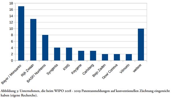 Quelle: No patents on seeds!: Elf Gründe, warum Europa Patente auf Nahrungspflanzen und Nutztiere verbieten muss Neue Beispiele für Patentanträge auf Pflanzen und Tiere aus konventioneller Zucht, April 2020
