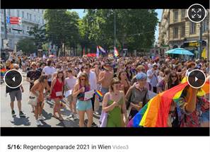 Erfreut stellten die Anfragesteller fest, dass die Versammlungsfreiheit wieder uneingeschränkt möglich zu sein scheint. Am Samstag, 19. Juni 2021 fand die sogenannte Regenbogenparade in Wien statt. Laut offiziellen Schätzungen der Polizei waren rund 30.000 Teilnehmer bei dieser Kundgebung. „[…] Was den Schutz vor Corona betrifft, so wurde vom Veranstalter sogar das Tragen einer FFP2-Maske empfohlen, dem wurde jedoch nur von wenigen Teilnehmern nachgekommen, schließlich lief die Veranstaltung auch im Freien ab. […]“, war im „Kurier“ online zu lesen. Zwischenfälle soll es demnach während der Veranstaltung keine gegeben haben. Mit Fotos dokumentierte der Kurier auch die Teilnahme namhafter Politiker bei der Veranstaltung: