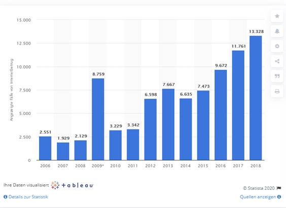 Die Statistik der letzten Jahre über den Internetbetrug verdeutlicht das Problem. Waren im Jahr 2007 noch 1.929 Fälle zu verzeichnen, betrug die Anzahl der gemeldeten Strafdelikte im Jahre 2018 bereits 13.328.