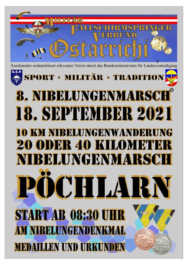 Seit 2014 findet jährlich im Herbst der „Nibelungenmarsch“ als Veranstaltung des "Militär Fallschirmspringer Verbund Ostarrichi" ("Milf-O") statt. Neben dem Marsch werden meist im Zuge der Veranstaltung ebenfalls private Schießübungen absolviert. Im Jahr 2014 hat noch das Verteidigungsministerium mit einer Weisung[1] (BMLV, GZ S93105/17-EFü/2014) eine Teilnahme in Uniform verboten. Seit dem 30. Mai 2018[2], unter dem damaligen Verteidungsminister Mario Kunasek genießt der MILF-O am Bundesministerium für Landesverteidigung den Rang eines wehrpolitisch anerkannten Vereines. Der Verein Milf-O war in der Vergangenheit in die Schlagzeilen geraten, weil ihm eine Nähe zum Rechtsextremismus attestiert wurde. Diese Vorwürfe hat der Verein stets bestritten.
