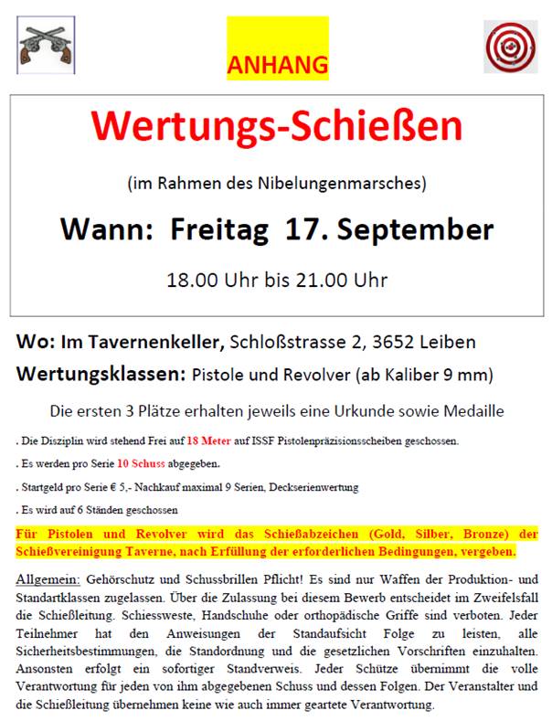 Auch dieses Jahr findet am 17. September 2021 wieder ein „Nibelungenmarsch“ inklusive eines privaten Wertungs-Schießens am Vorabend des Marsches statt. Zu diesem wird auch in der Einladung für den Marsch direkt im Anhang hingewiesen.[5]