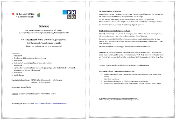 Bildungsdirektion Niederösterreich eine Einladung zu einer