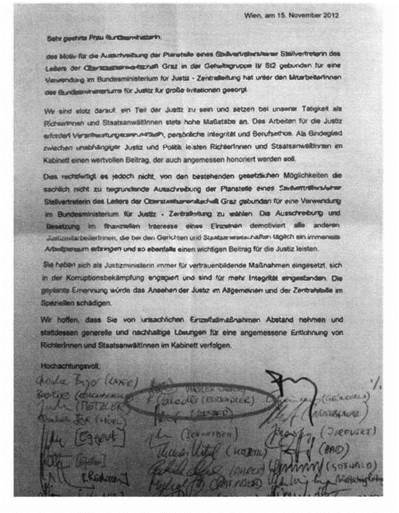 „Die Ausschreibung und Besetzung im finanziellen Interesse eines Einzelnen demotiviert alle anderen JustizmitarbeiterInnen, die bei den Gerichten und Staatsanwaltschaften täglich ein immenses Arbeitspensum erbringen und so ebenfalls einen wichtigen Beitrag für die Justiz leisten."