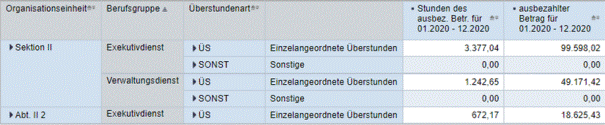 4. Welche und wie viele Überstunden wurden 2020 in der Abteilung II2 der Generaldirektion für den Strafvollzug und den Vollzug freiheitsentziehender Maßnahmen pauschal abgegolten? (Bitte um genaue Aufschlüsselung)