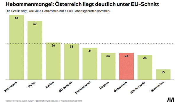 Gemäß den Recherchen der Internet-Plattform moment.at hat Österreich nicht nur in den Pflegeberufen generell, sondern vor allem im Bereich der Hebammen einen massiven Personalmangel: