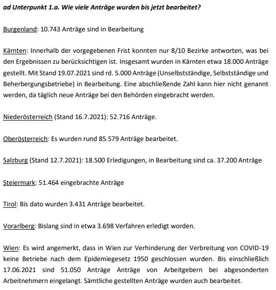 Wiederholt treffen bei uns Nachrichten von Bürgern ein, welche auf Probleme bei der Auszahlung der Entschädigung nach dem Epidemiegesetz hinweisen. Laut der Beantwortung der Anfrage 7052/J „aktueller Stand der Entschädigungen nach dem Epidemiegesetz“ war der Stand am 11. August 2021: