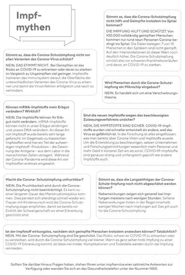 Besonders zu beachten ist aber die Rückseite des Schreibens mit dem Titel „Impfmythen“: