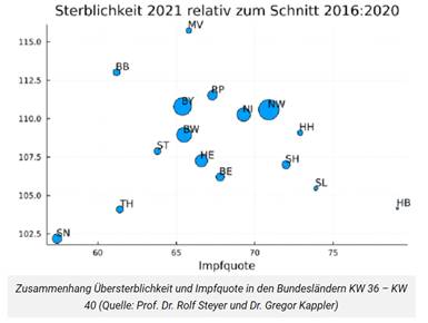 Prof. Dr. Rolf Steyer (Universität Jena) und Dr. Gregor Kappler schreiben eine Studie mit dem überraschenden Ergebnis, dass in allen 16 deutschen Bundesländern im Zeitraum der Kalenderwoche 36 bis 40 dieses Jahres es zu einer Übersterblichkeit kam.