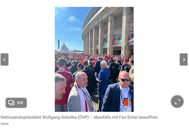 Wie durch zahlreiche Medienberichte und Social-Media Postings ersichtlich, war neben Bundeskanzler Karl Nehammer und Vizekanzler Werner Kogler auch Nationalratspräsident Wolfgang Sobotka beim EM-Länderspiel Österreich –Niederlande am 25.06.2024 in Berlin zugegen.[1]