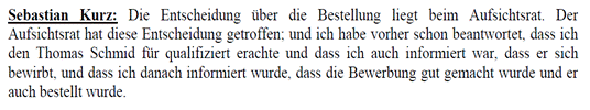 - Bei seiner Befragung im Untersuchungsausschuss im Juni 2020 stellt sich Kanz ler Kurz selbst als Statist dar, der maximal informiert wurde, jedoch nie selbst aktiv Entscheidungen getroffen hat.