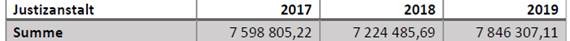Die medizinischen Kosten pro Hafttag pro Insasse betrugen in den Jahren 2017 und 2018 28,65 Euro und im Jahr 2019 stiegen die Kosten auf 29,27 Euro.