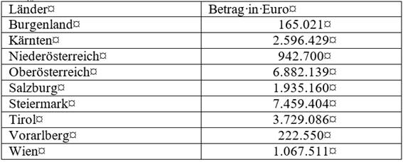 So wurde der Verteilungsschlüssel der Wohnbevölkerung mit jenem verglichen, der sich aus den nach dem Gesundheitsberuferegister zum Stichtag 31.12.2020 in den Settings nach § 3 Abs. 2 registrierten Personen ergibt. Für die im Gesundheitsberuferegister nicht erfassten Sozialbetreuungsberufe (Heimhelferinnen und Heimhelfer sowie Behindertenbegleiterinnen und Behindertenbegleiter) wurde von einem gleichen Verteilungsschlüssel ausgegangen. Die Mittel wurden sodann für die unterdotierten Bundesländer auf das Niveau dieses Verteilungsschlüssels aufgestockt. Die sich danach ergebende verbleibende Summe von rund 11 Millionen Euro wurde im Verhältnis der jeweils für das jeweilige Bundesland günstigeren Beträge ergänzt, sodass letztendlich die in der Tabelle des § 2 Abs. 3 angeführten Summen zur Verfügung gestellt werden.