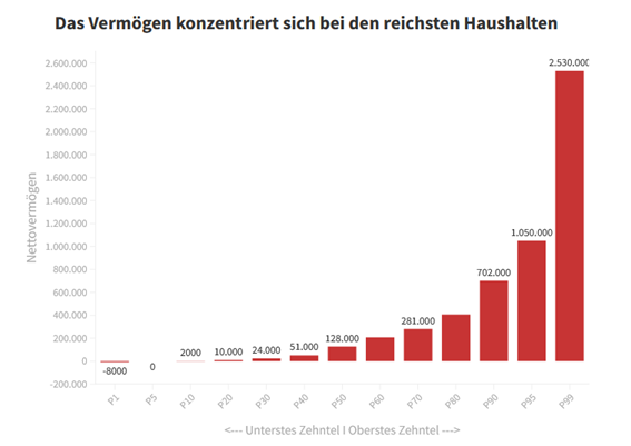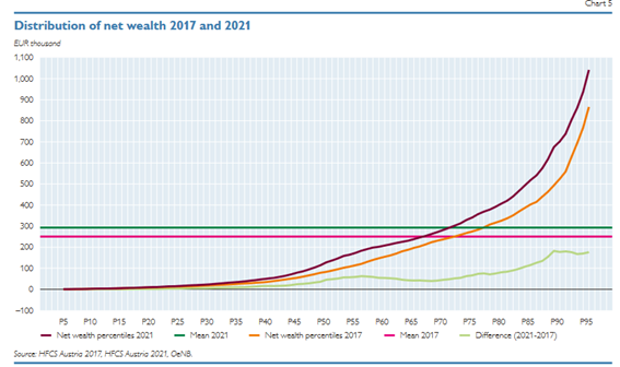 Die Oesterreichische Nationalbank hat in ihrem letzten Household Finance and Consumption Survey (der jedoch nur bis zur 95. Perzentile reicht) festgestellt, dass 5% der Haushalte (nicht zu verwechseln mit der Bevölkerung) über Vermögen von rund 1,05 Million Euro oder mehr verfügen, was mit den Werten in der Credit Suisse/UBS-Erhebung vergleichbar ist: