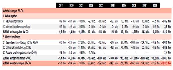 Von 2018 bis 2023 ergibt sich für die ÖGK aus diesen Maßnahmen bereits ein Minus von 388 Mio. Euro. Bis 2028 – also 10 Jahre nach der versprochenen Patientenmilliarde – steigt der Verlust auf 1,21 Mrd. Euro an – finanzielle Mittel, die für die Sicherstellung der Gesundheitsversorgung der Bevölkerung von wesentlicher Bedeutung wären.
