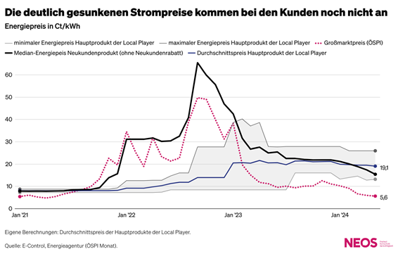 Seit Beginn der Turbulenzen auf den europäischen Energiemärkten, waren österreichische Haushalte und Unternehmen von gestiegenen Endkundenpreisen besonders stark betroffen. Dieser Befund ist auch im Frühsommer 2024, also zu einem Zeitpunkt, zu dem die Großmarktpreise seit Monaten kontinuierlich sinken, aktueller denn je: