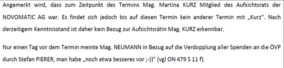 Das Dritte, was wir lernen: Es gibt keine direkte Spende der Novomatic an die ÖVP. Das wundert die, die im Untersuchungsausschuss sind, gar nicht, denn ans Alois-Mock-Institut oder an die ÖVP Niederösterreich wurde auch nie direkt gespendet, sondern das heißt dann Sponsoring, Kooperation, Inserat oder verdeckte Kostenübernahme von ÖVP-Ausgaben, die Novomatic hat also direkte Ausgaben der ÖVP Niederösterreich bezahlt. Und da interessiert uns: Was hat Herr Blümel gemacht? Hat es Sponsorings gegeben? Hat es Kooperation gegeben beziehungsweise hat es verdeckte Kostenübernahmen für die ÖVP Wien oder die Bundespartei durch die Novomatic gegeben? – Und diese Antwort sind Sie schuldig. (Beifall bei der SPÖ sowie der Abgeordneten Margreiter und Shetty.)
