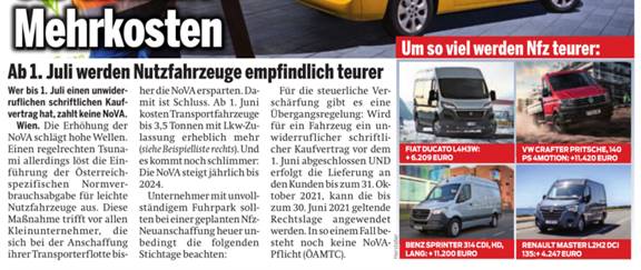 Laut Kurier vom 7. Dezember 2020 kostet die NoVA-Änderung den Unternehmen 1,18 Milliarden Euro: