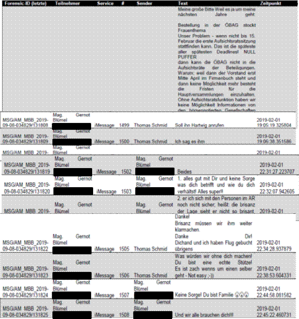 Eine Konversation zwischen Mag. LAURE und MMag. SCHMID vom zeigt das Bestreben von MMag. SCHMID zur ÖBAG zu wechseln. Weiters ist zu erkennen, dass auch Mag. LAURE davon ausgeht, bald für die ÖBAG tätig zu sein, da sie sich erkundigt, ob sie dort ine Klimaanlage einbauen lassen können.