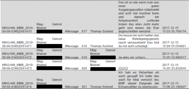 Der Generalsekretär im BMF, Thomas Schmid, und engster Vertrauter von Bundeskanzler Sebastian Kurz sucht sich – in der Rolle als oberster Beamter im BMF – zunächst „seine“ Aufsichtsräte in der ÖBAG selbst aus, führt mit allen Einzelgespräche. Danach „zimmert“ er sich als Generalsekretär eine Ausschreibung für einen ÖBAG-Alleinvorstand mit einem jährlichen Salär von 400.000 bis 600.000 Euro selbst zusammen.