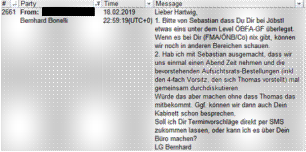 Das ist das Einzigartige: In diesem Fall geht es nicht nur um eine politische Besetzung, sondern da geht es um etwas ganz anderes. Da geht es darum, dass sich ein Herr Thomas Schmid, der zur Familie gehört, mit dem Bundeskanzler und mit dem Herrn Finanzminister – das ist so eine Dreiecksbeziehung, da fliegen Bussis hin und her – zusammensetzt, und das lange bevor der Herr Bundeskanzler Kurz Bundeskanzler war, noch lange bevor Minister Blümel überhaupt ein Ministeramt bekleidet hat, und sie teilen sich auf, was sie möchten.
