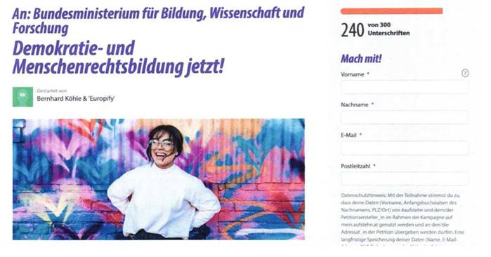 Petition: „Demokratie- & Menschenrechtsbildung jetzt!":