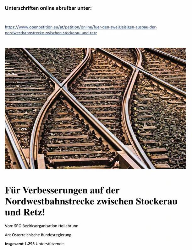 Petition für Verbesserungen auf der Nordwestbahnstrecke zwischen Stockerau und Retz!