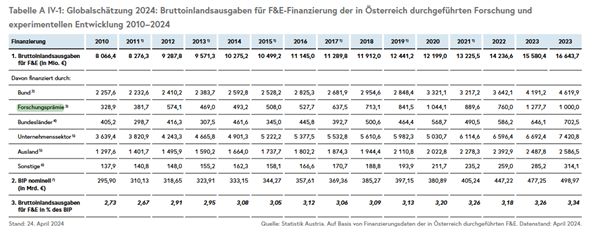 Tabelle 1, Quelle: Forschungs- und Technologiebericht 2024[5]
