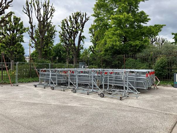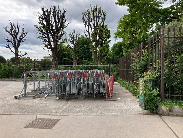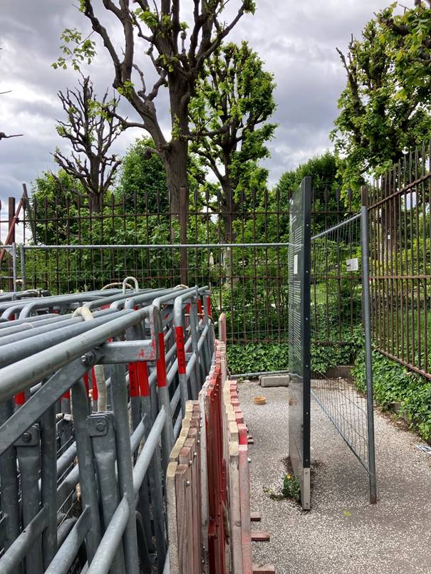 5) Seit wann und wie lange wurde die Denkmalfläche als Abstellplatz für Polizeigitter verwendet? Bitte um Angabe des genauen Zeitraums.