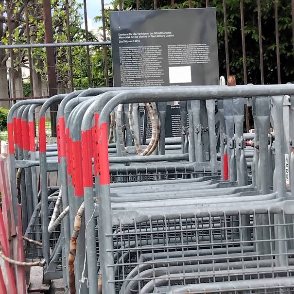 Das Deserteursdenkmal sowie die gesamte dazugehörige Denkmalsfläche sind kein Abstellplatz für polizeiliche Absperrgitter! Die Würde des Denkmals im Andenken an Zehnttausende zu Unrecht verurteilte Wehrmachtsdeserteure die über Jahrzehnte diskriminiert wurden, ist auch und gerade durch die Vertreter:innen der Polizei zu respektieren.