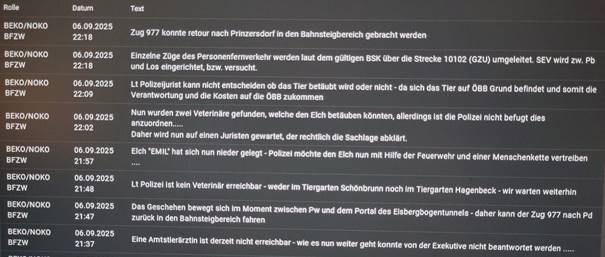 Auch nach wochenlanger Anwesenheit des wanderfreudigen und wenig schreckhaften Wildtiers im Bundesland Niederösterreich hatte sich offenbar betrieblich, behördlich und bei den Blaulichtorganisationen niemand ernstlich mit der konkreten Vorbereitung auf eine solche Situation befasst, obwohl die elchbedingte Verkehrsknoten-Lahmlegung angesichts der dichten Infrastruktur in der Ostregion ja nicht völlig überraschend kam.