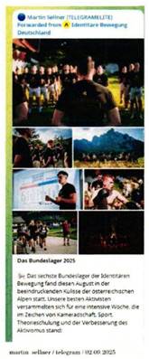 [1]1www.derstandard.at/story/3000000286834/identitaeren-camp-im-salzkammergut-martialische-bilder-kampfsport-und-voelkische-vortraege, abgerufen am 9.9.2025