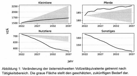 Diese Entwicklung wird durch wissenschaftliche Prognosen untermauert. Laut einer Studie von Rippinger & Popper wird bereits für das Jahr 2027 ein Mangel von rund 30 bis 50 Vollzeitäquivalenten (VZÄ) im Nutztierbereich prognostiziert, was etwa 32 bis 55 Personen entspricht. Bis zum Jahr 2032 steigt diese Lücke auf 70 bis 105 VZÄ bzw. 85 bis 120 Personen an.