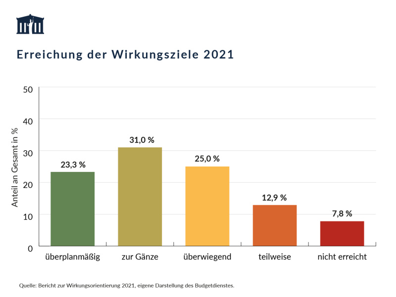Im Bundesvoranschlag definieren Ressorts und Oberste Organe (gesellschaftliche) Wirkungen, die sie mit ihrem Budget erreichen wollen. Die Beurteilung der Zielerreichung erfolgt ressortintern, die ressortübergreifende Wirkungscontrollingstelle des Bundes informiert den Nationalrat über diese internen Evaluierungen mit einem jährlichen Bericht.