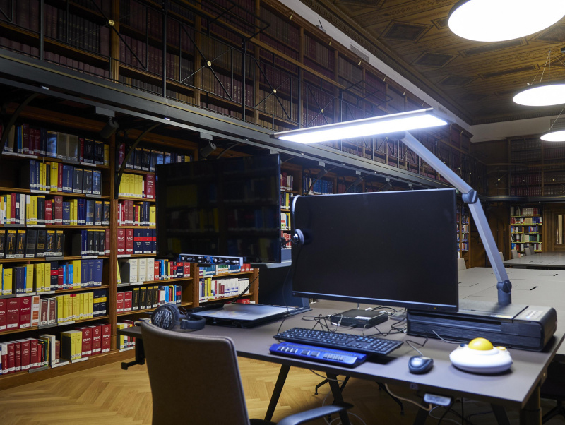 Die Ausstattung des Arbeitsplatzes für Menschen mit Sehbehinderung umfasst:
