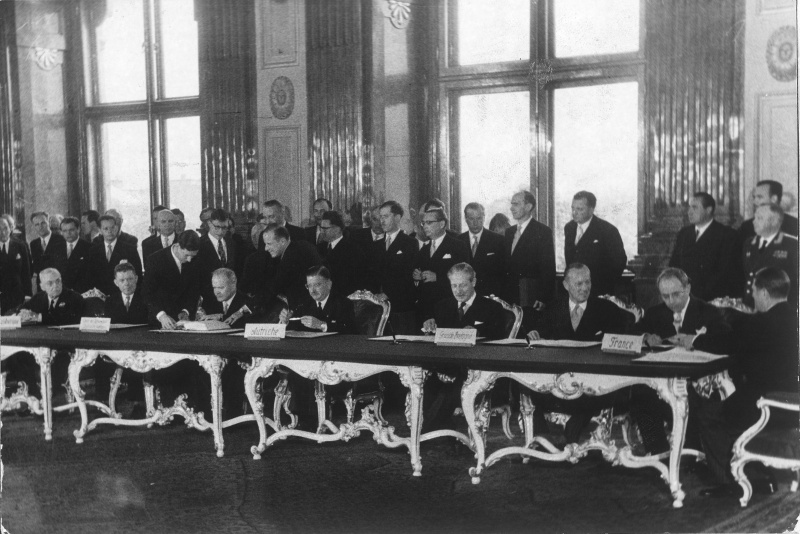 Staatsvertrag - feierliche Unterzeichnung im Schloss Belvedere in Wien am 15. Mai 1955