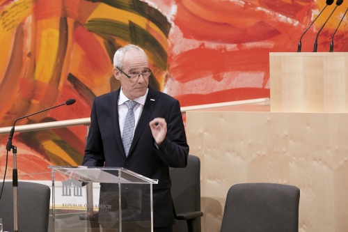 Eckart Ratz - betraut mit der Fortführung der Verwaltung im Bundesministerium für Inneres am Rednerpult